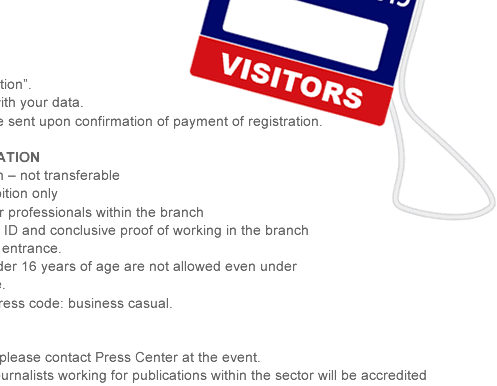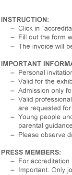 Open event FREE ADMISSION for industry professionals only. Visitors under 16 years will not be admitted, even if accompanied by an adult.